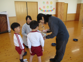 園長先生から修了記念品をいただきます。