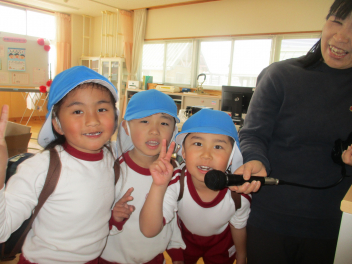 年長さんに「幼稚園で楽しかったことはなんですか?」とインタビューします。
