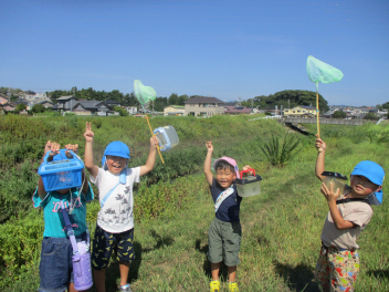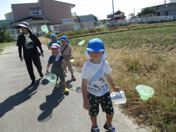 はじめは、虫の捕まえ方が分からずに戸惑っていた子も、虫の捕まえ方が分かると、意欲的に取り組むようになりました。