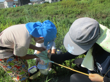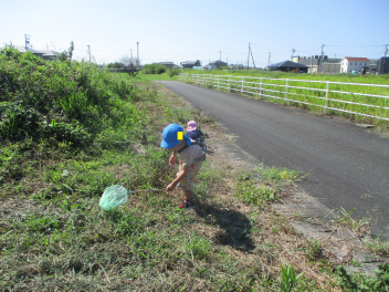 御陣屋川の堤防に出かけ、虫取りをすることにしました。