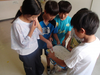 でき上がったところで、友達の問題をみんなで解いていきました。