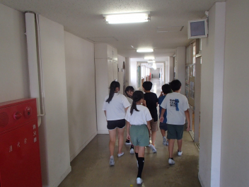 校内にチェックポイントを用意し、コマ地図を見ながら回ります。グループのみんなでコマ地図を見て、地図に示された通りに歩いていきます。