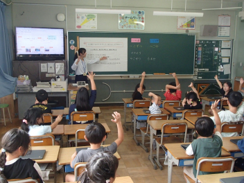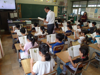 これまでの学習を振り返った後、今日の学習の場面を音読しました。