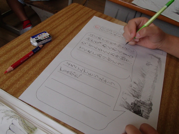 最初の場面と今日の場面のそれぞれに挿絵があり、似ているようで二人の表情が変わっています。このようなところも手掛かりにして、手紙が届くのを待っている二人の思いをワークシートに書きました。