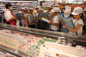 先週の1組見学に引き続き、今週9日(木)は、1,2組が 5,6時間目に 社会「お店ではたらく人」の学習として、マックスバリュを見学しました。普段見慣れているお店の中や普段は見ることができないバックヤードを、従業員の方と一緒に説明を受けながら見学しました。見たり聞いたりする中で、お店で働く人の工夫をたくさん見つけることができました。
