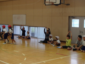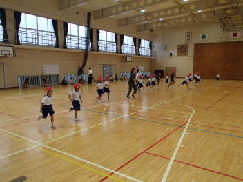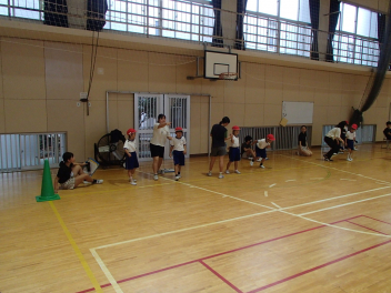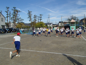 朝方まで降った雨で運動場はぬかるんでいるところもありましたが、その部分は避けることで運動場でも実施できました。