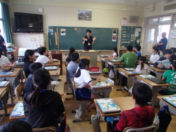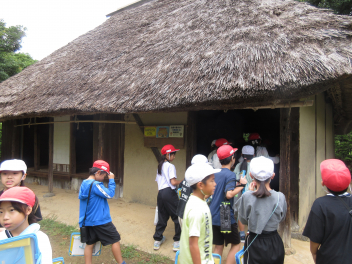 「浜松市博物館」では、昔の人々の生活とその移りかわりついて学習しました。電気・ガス・水道がない時代の不便さを知るとともに、そんな生活の中で生み出された工夫に「昔の人ってかしこい!」と感心する様子がみられました。また、実際に「火のし」、「炭火アイロン」「電気アイロン」を使ってハンカチのしわを伸ばす体験をしました。実際に使ってみることで、それぞれのよさを実感することができました。