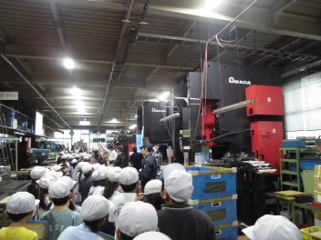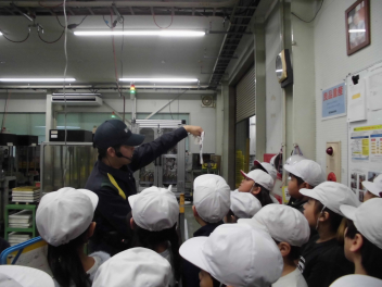 「鈴木楽器製作所」では、実際に工場の中を見学しました。子どもたちが特に興味を持ったのが、音の調律をする場面です。実際に音を鳴らしてミリ単位でプレートを削って調律している様子を真剣に観察していました。また、実際に自分たちが使っている鍵盤ハーモニカがたくさん並べられている様子にも目を奪われていました。