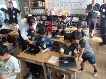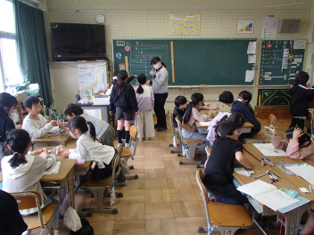 今日は1年生の1学級が6年生のサポートを受けながら実施しました。