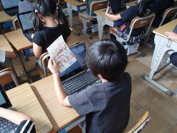 校内なので迷うことはありませんが、グループの人と協力して回ること、きちんとコマ地図を確認することの大切な練習です。