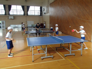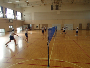 運動場ではフットサル、ドッジボール、ソフトボール。体育館では、バドミントンと卓球のクラブ活動が行されました。