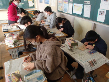 •  6年生の図画工作科では、オルゴールボックス作りに取り組んでいます。