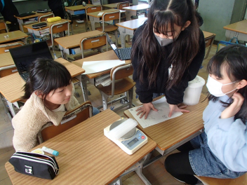 5年生のめいけん学習の大きなテーマは「環境」です。「水問題」や「エネルギー」、「食品ロス」、「自然環境」などのグループに分かれて活動を進めてきました。3学期に入り、この学習活動もまとめの段階に入っています。アンケートの集計、発表の準備などを友達と相談しながら進めています。