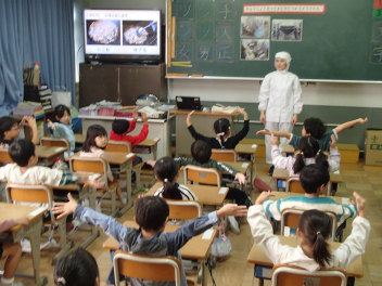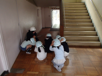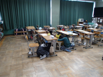 20分休みの突然の訓練地震発生でしたが、子供たちはすぐに場所に応じた身を守る行動ができました。