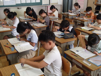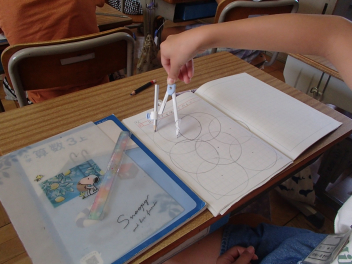 子供たちは次第に慣れてきて、ノートにはたくさんの円をきれいにかくことができました。