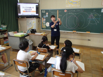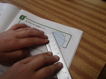 コンパスの針の先と鉛筆の先がほぼそろうようにすること、ノートから下敷きは外すこと、コンパスの持ち方などを教わりました。