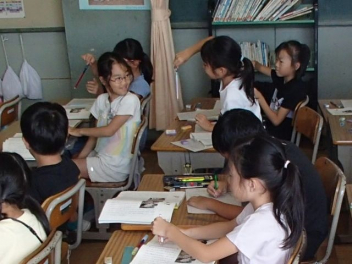 ペンギンが魚と間違えてボールペンを飲み込んでしまったとき、獣医が「そっとボールペンをとり出しました。」と書かれていました。「そっととり出す」とはどのような様子か、動作化してみんなで確認していきました。