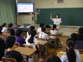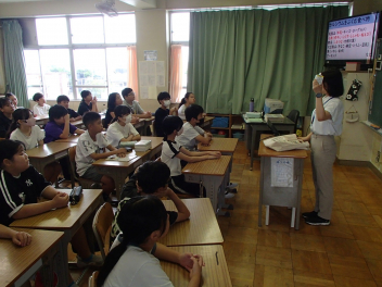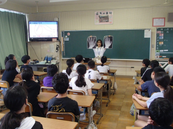 •  学校栄養職員による食に関する指導が、6年生から始まりました。
