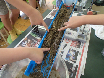 水が土砂と一緒に下流に流れる様子を興味深く見入っていました。