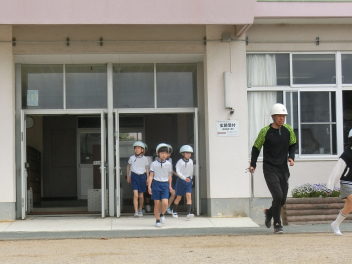 和田小の子供たちは、新学年になり、新しい教室から、災害時に、どのように避難するのかを確かめるための、第1回 避難訓練を行いました。