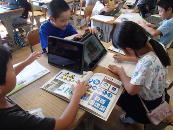 続いて、タブレット端末を使って、インターネット上で紹介されているピクトグラムを調べました。