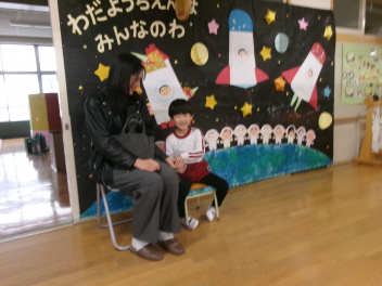 最後は、幼稚園のみんなで元気いっぱい「うちゅうにムチュー」を歌いました