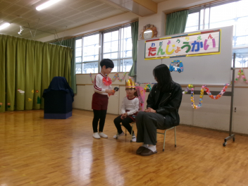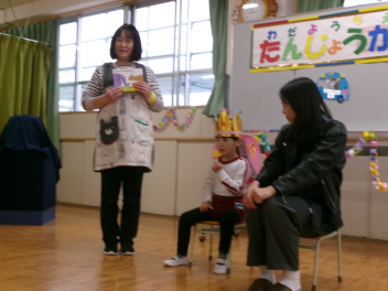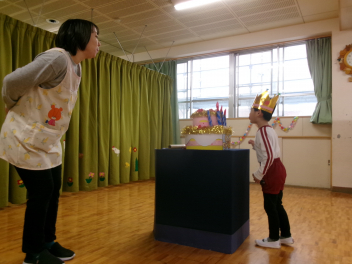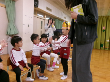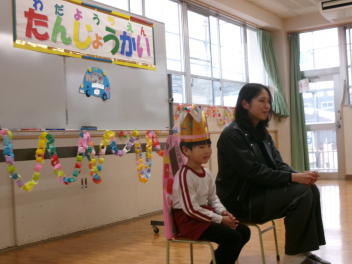 誕生日のお友達が座る椅子の背もたれの部分や冠は、毎回ぞう組さんが、その子の好きな物を折り紙で折ったり、絵を描いたりし、思いを込めて作ってくれますcheekycheekyぞう組さん!毎月準備をありがとう!!11月も心のこもった誕生会となりました