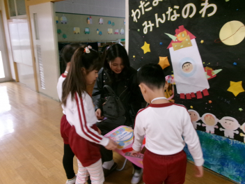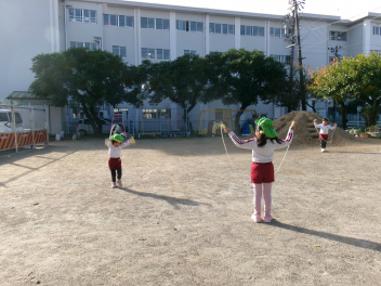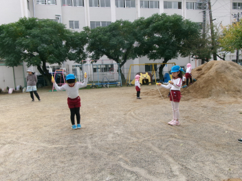 中ノ町幼稚園では、広い園庭で、思い切り走ったり、かくれんぼをしたり、リレーをしたりして、楽しむことができました!!楽しい時間はあっという間で「お弁当を一緒に食べたかったね~mail」と名残惜しいお別れでしたfrown今度は1月です!!縄跳びをしようね~!!と約束していましたcheeky