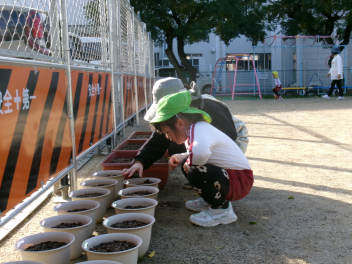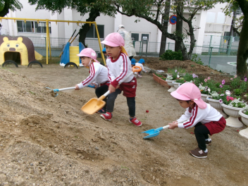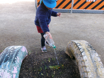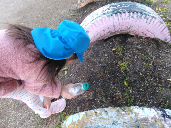 以前、ぞう組さんとぱんだ組さんが植えた「麦」が芽を出しました「あ!!やっと芽を出した!」「かわいい~!!」と嬉しそう!!先週植えたちゅうりっぷの球根も「まだ咲かないかな~」と毎日水遣りをしながら確かめていますcheeky