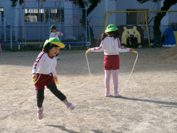 ぱんだ組さんとぞう組さんは、最近縄跳びに挑戦中跳べるようになってきました