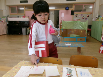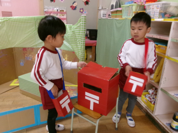 うさぎ組さんでは、郵便屋さんとポストが登場frown手紙をポストに入れると、届けてくれました