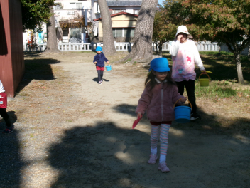 どろかれーの材料を集めて、幼稚園の園庭にない材料は隣の神社に拾いに行ってきました!!