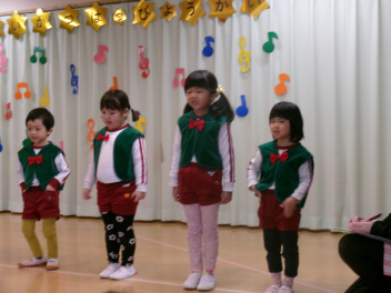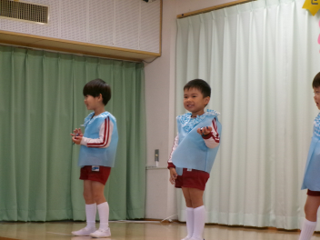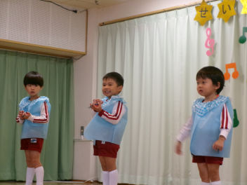 第2部は、年少うさぎ組さんからスタートです「サンタッタ」「くいしんぼうのありさん」「ロケットペンギン」ですcheeky