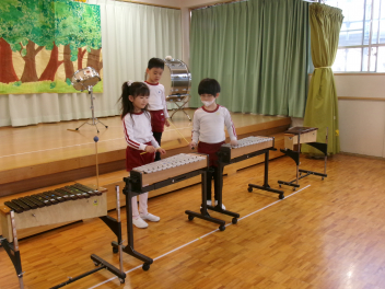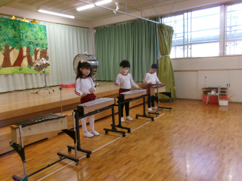ぞう組さんが、歌をうたいながら、合奏の練習をしていました!!自分たちで進めていた様子laugh