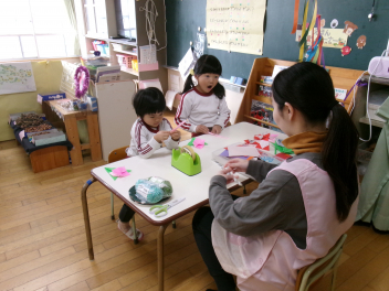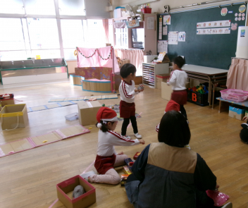 これから行われる「生活発表会」に向け、友達と相談しながら行っている様子ですfrown日頃の活動や遊びが「生活発表会」につながりますfrownいっぱい応援しながら、当日を楽しみにしたいと思います。