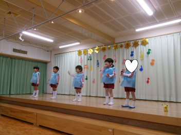 初めての発表会laugh緊張でドキドキの子もいれば、「ママ~!!」と手を振る子もいて、うさぎ組さんらしさが100%出ていましたね