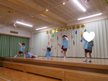 最後のポーズは、とってもかっこよくきまりましたね初めての発表会とは思えないほど、みんな伸び伸びと楽しんでいたように思えましたlaugh衣装もとってもかわいく、保護者席からも「かわいいね~!!」の声が・・・保護者の皆様の温かい御声援ありがとうございましたlaugh続いては、年中ぱんだ組さんです!
