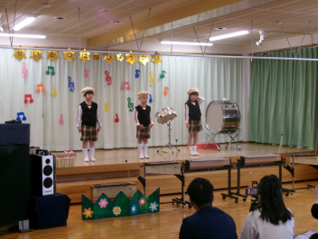 そして最後は、年長ぞう組さんです!!「おひさまになりたい」「さんぽ」「うたえバンバン」「にじのむこうに」ですfrown合奏は、最初が全員で鉄琴木琴、その後打楽器でしたリズムに合わせて、友達と気持ちを合わせながら行いました歌も、きれいな声で、会場全体に聞こえるような声でしたfrownさすがぞう組さんです