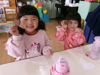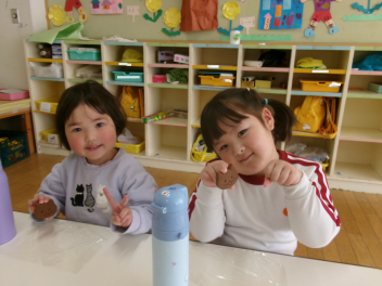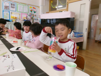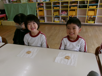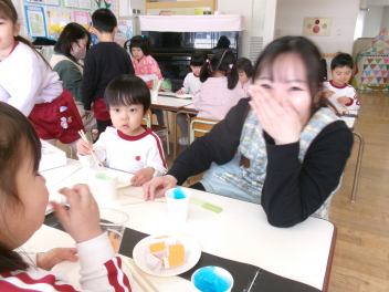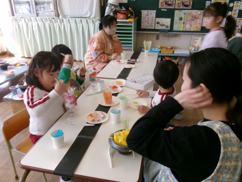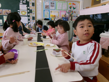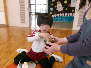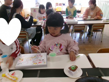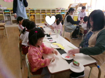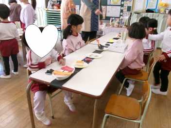 「これなんだろう??」「あっ!お餅に色がついているね~」などと興味津々です