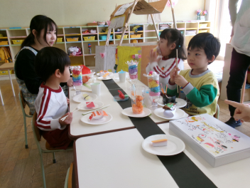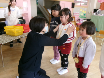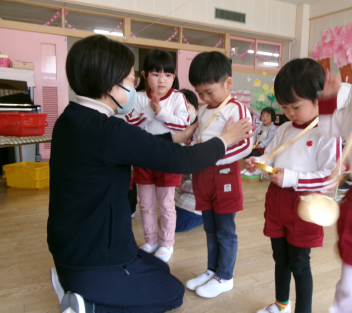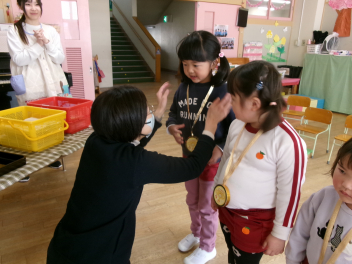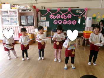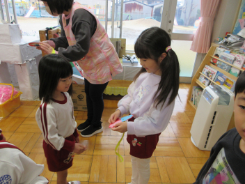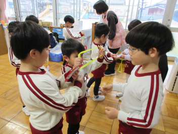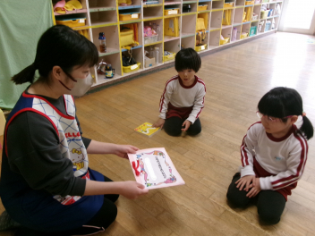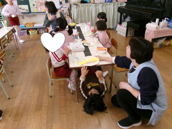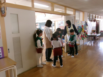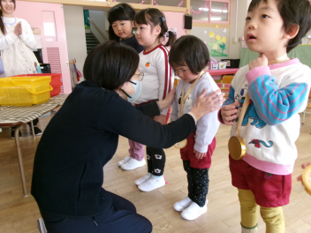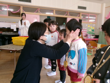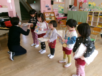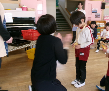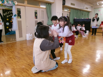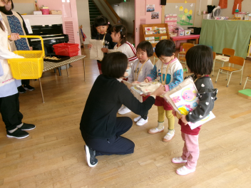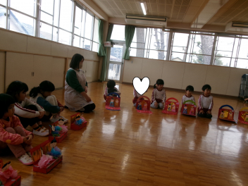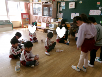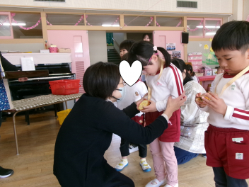 25日(水)には、ぱんだ組さんとぞう組さんで中ノ町幼稚園に今年度最後の交流会に行ってきました