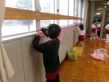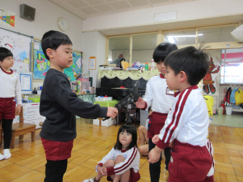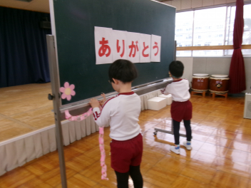 自分たちの「卒園式」のために、気が付いたところを言い合って、修正したり、やり直したり・・・思い出に残る「卒園式」になるように最後の日まで頑張ろうね