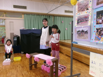 効果音があったり、鍵盤ハーモニカの挿入歌があったり、途中で「かばくんのさんぽ」になったり、笑みがこぼれる劇でした