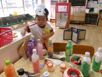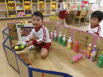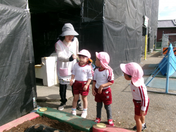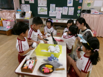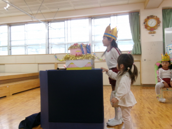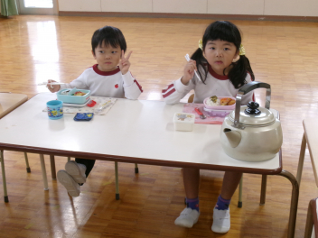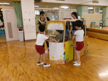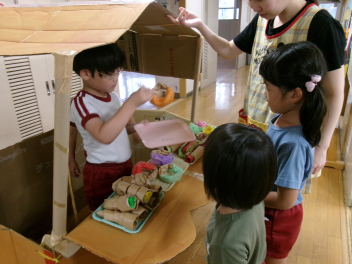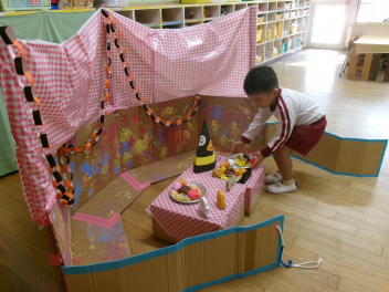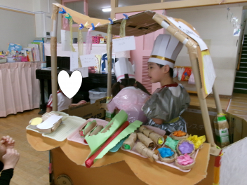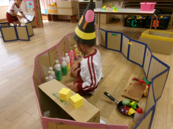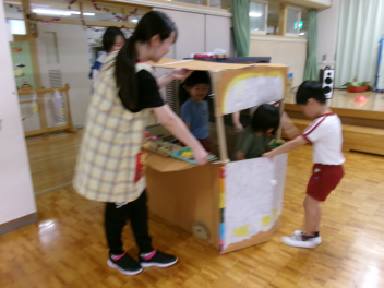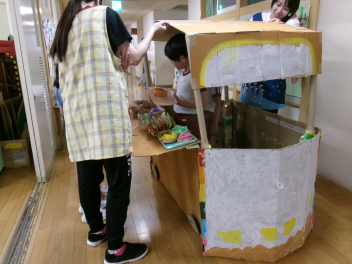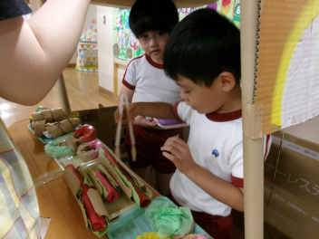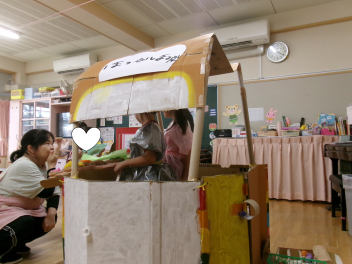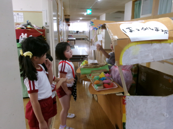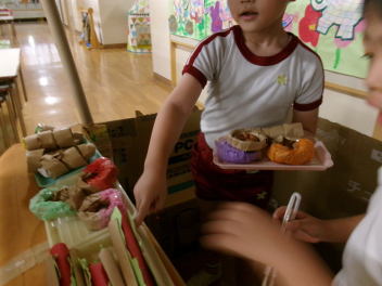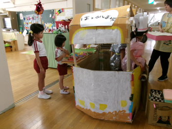おにぎりをごちそうになったぱんだ組さん!!昼食後にうさぎ組さんをぱんだ組の「お菓子屋」さんに招待してくれました!!