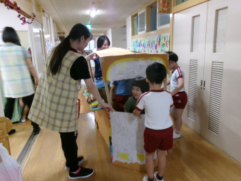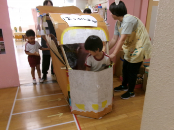 「ほっかほっカー」の中が気になるうさぎ組さんに、「階段の下まで乗っていいよ」と乗せてくれました!
