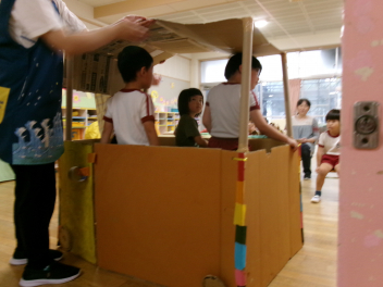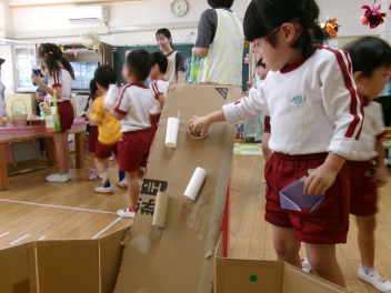 各部屋の交流が自然と出来ていて、幼稚園中がとても賑やかです