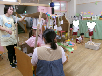 そして、当日はうさぎ組さん、ぱんだ組さんと一緒に準備をし、お誕生日のお友達をお迎えしました