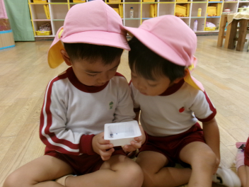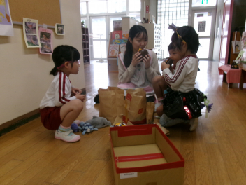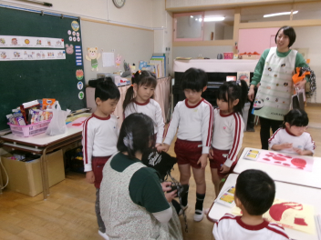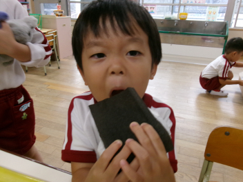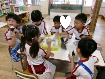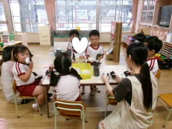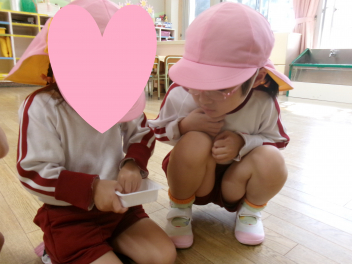 数を数えて「全員分あるね。お休みの子の分もちゃんとあるよ!!」とみんなでわけっこです!!お家に持ち帰りました!