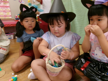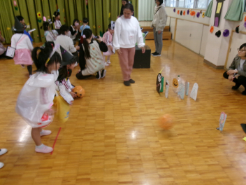 その頃幼稚園では、うさぎ組さんがハロウィンパーティーを楽しんでいた様子