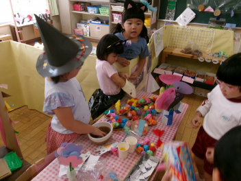 「トリック・オア・トリートお菓子をくれないといたずらしちゃうぞ!!」と仮装した子どもたちが幼稚園中に・・・