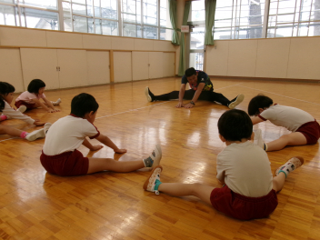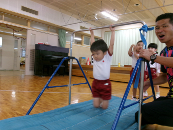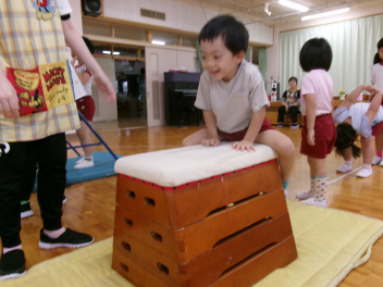 鉄棒は、足抜きや前回りが出来るようになってきました跳び箱は、少しずつ「跳ぶ」ことにも挑戦です!!